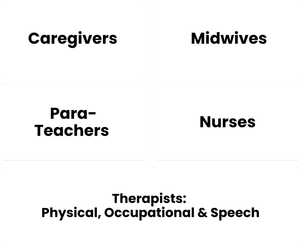 As a care company, we provide care professionals for families spanning child, elderly, rehabilitative, development and special needs.