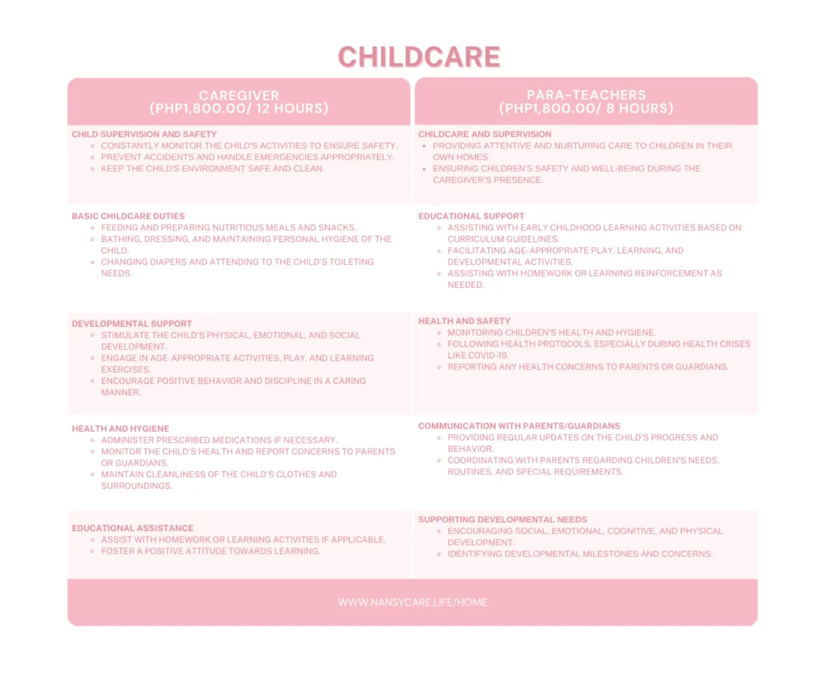 Play and Learning, Developmental Monitoring, Child Minding, Social Skills Development, Health and Nutrition, Physical Activity