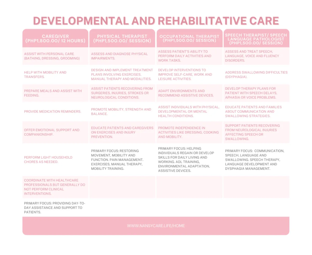 PHP 200 per hour Includes additional developmental and nutritional monitoring.